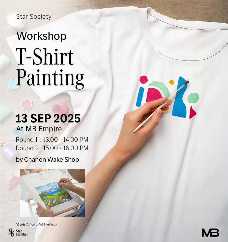 ร่วมสร้างสรรค์แรงบันดาลใจในแบบของคุณ กับกิจกรรม Star Society : T-shirt Painting Workshop เวิร์กชอปที่จะเปลี่ยนเสื้อยืดธรรมดา ให้กลายเป็นผลงานสุดพิเศษที่สะท้อo เอกลักษณ์และตัวตนอย่างแท้จริง/a>