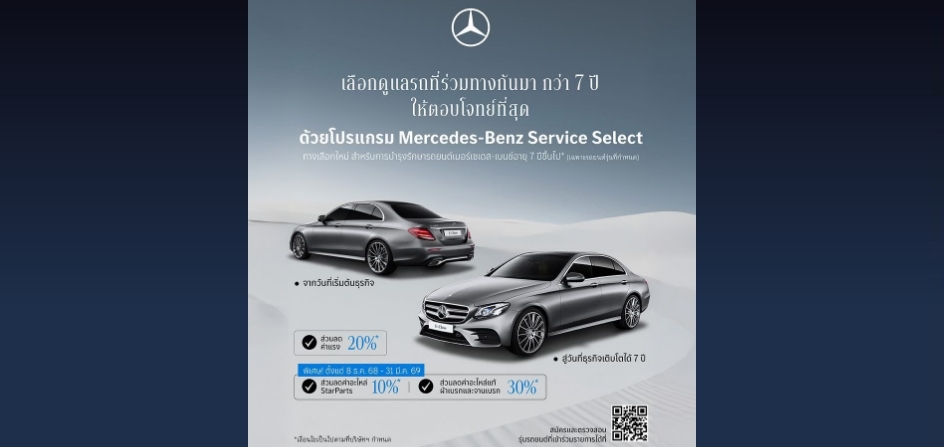 โปรแกรม Service Select ทางเลือกการดูแลที่ช่วยให้คุณดูแลรถได้อย่างคุ้มค่า ภายใต้มาตรฐานการบริการของ Mercedes-Benz